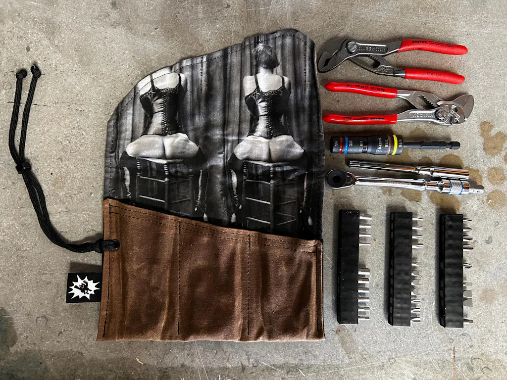 This roll was designed for your gear. Knives, small tools, lights, lighters, whatever you can think up. Chipp loves to carry his Gerber, Fenix Mini Flashlight, and a Bic. He is always ready to trim, spot, or smoke his way out of any situation. Unroll, unfold, and display your gear on the printed flap. No more clinking gear getting scratched and dinged inside your pocket or bag. Keep your investment in pristine condition by rolling it up.